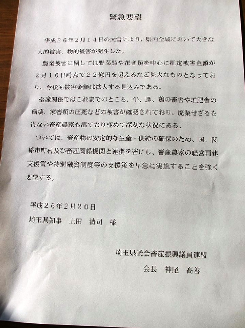 東入間JC主催の「東入間防災フェア」に行ってきました。あの東日本大震災を風化させてはいけないとの願いから毎年開催されています。会場には被災地からの出店や義援金の受付けもしており、少しばかりの寄付をさせていただきました。「あれから3年と言うより、まだ、3年間で手つかずのことばかり」今日はテレビでも特集を組んで放映しています。見ながら涙で出てしまいました。昔の話ですが、故大平外務大臣は当時のケネディー大統領に「日本が敗戦から早く復興できた秘密は何か」の質問に「災害が多いことを挙げました」日本人は耐えて、克服し、災害前よりも良くするんでと言う気持ち持ってきた。この力こそが復興の原動力です。」忘れてはならない言葉だと思います。